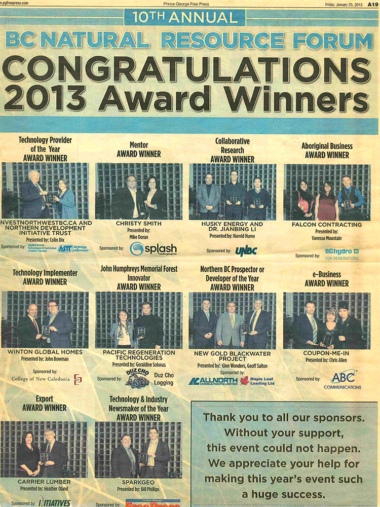 - 2013: First Nations Business Award from the Northern British Columbia Business and Technology Awards
